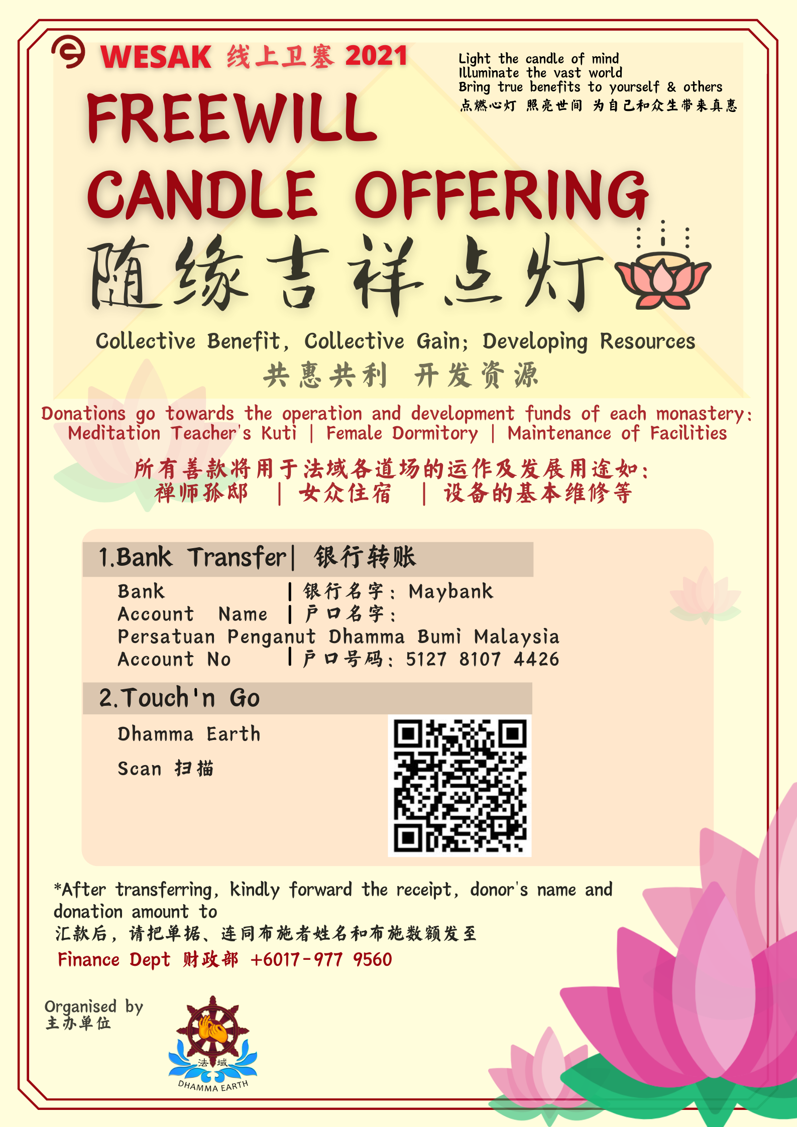 💝借着这特殊的佛教日子,以灯供佛的同时,让内心走向光明,同时亦可参与种种布施,不仅能为自己种福田,且能让无数的众生受惠。