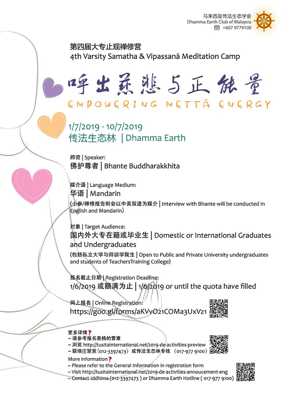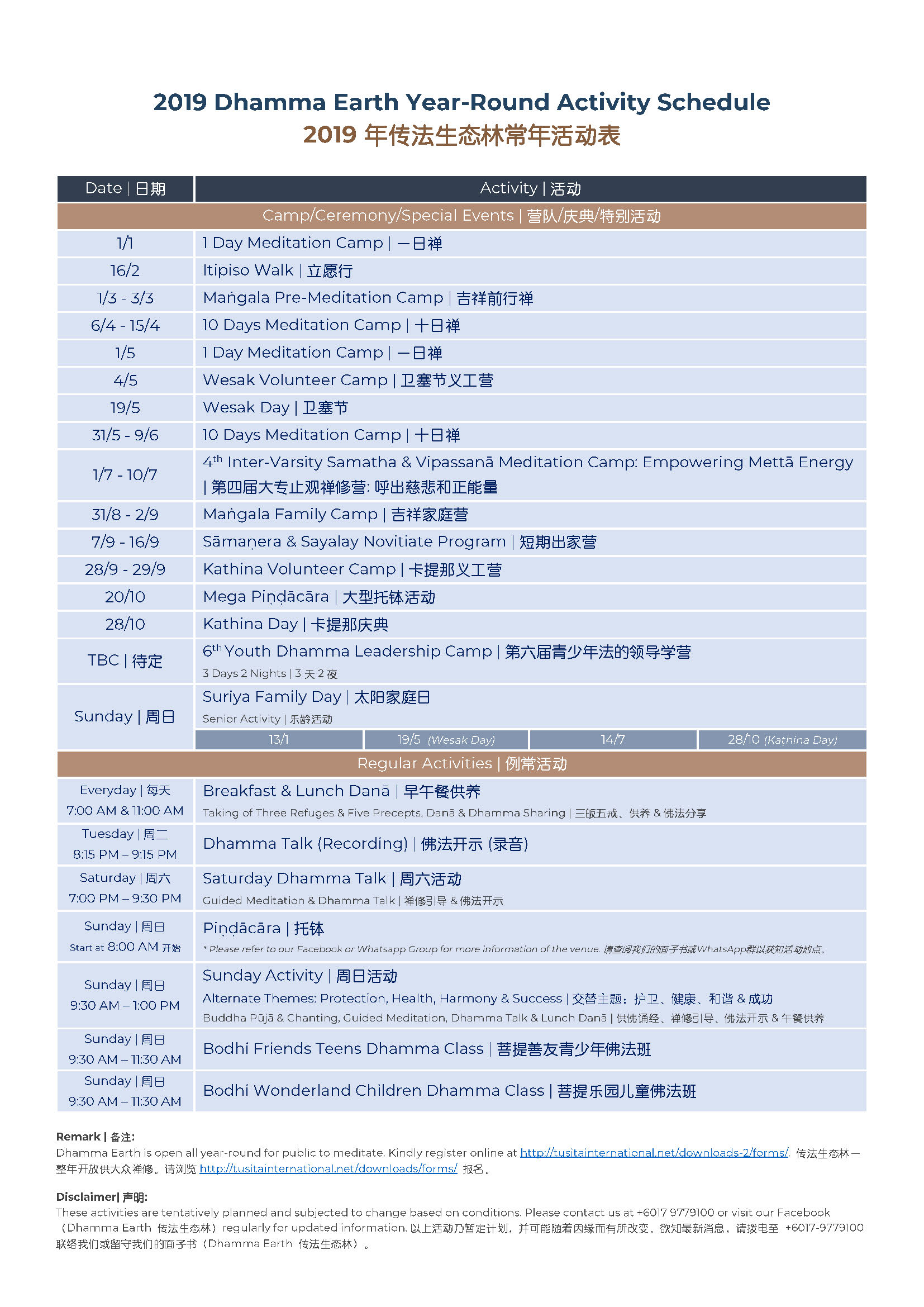 声明:以上活动乃暂定计划,并可能随着因缘而有所改变。欲知最新消息,请拨电至+6017-9779100,联络我们或留守我们的面子书。