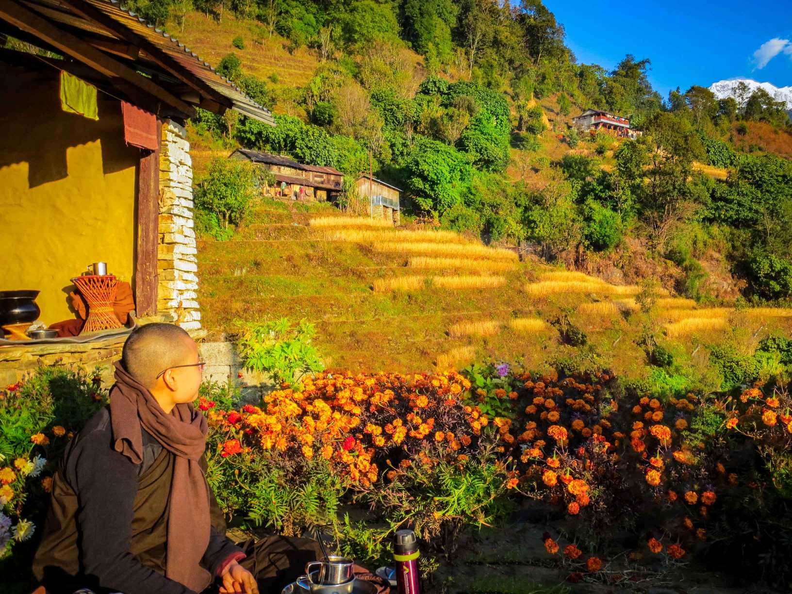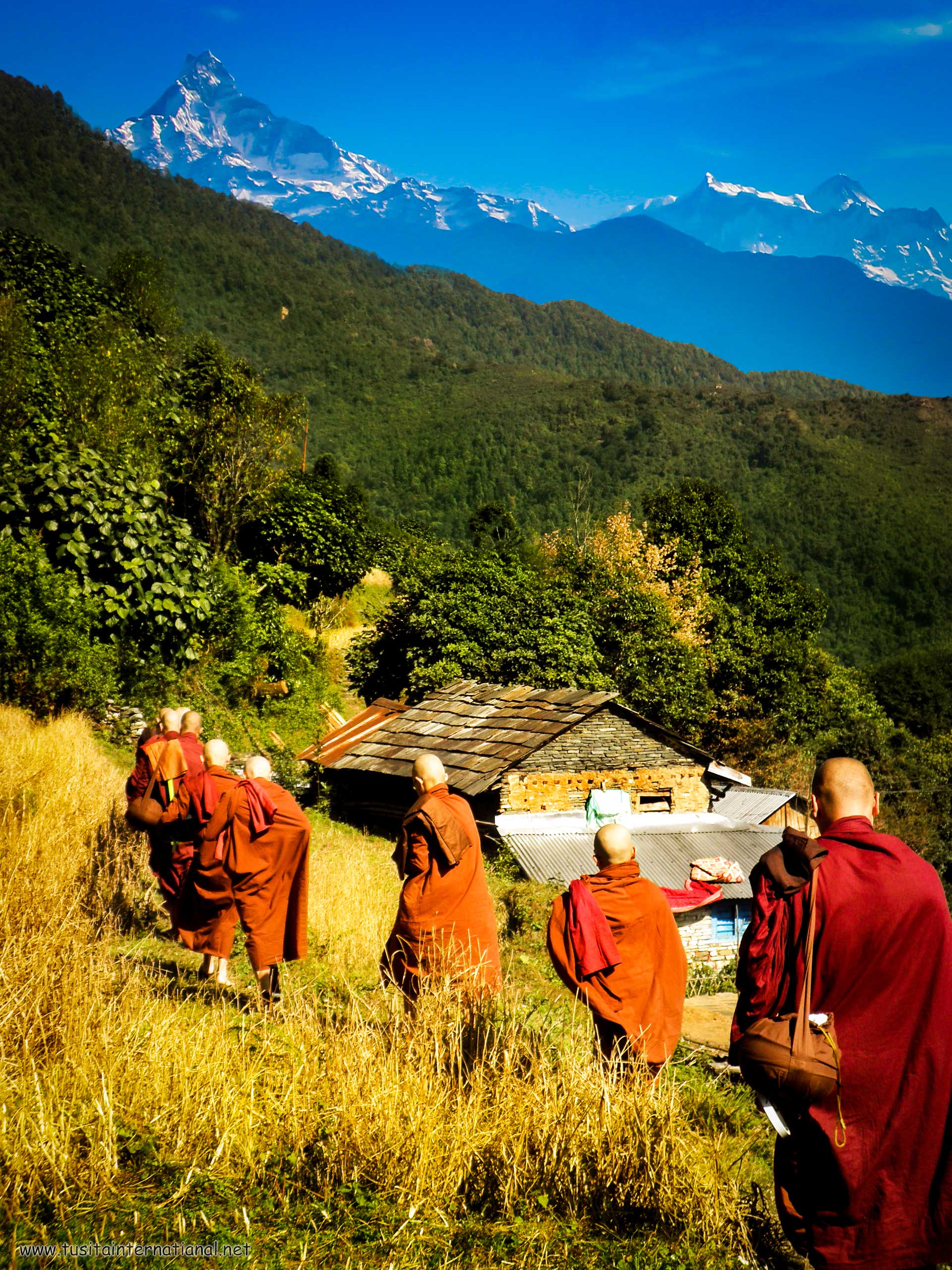 👆兜率天雪域道场坐落在喜马拉雅山脉安娜普纳(Annapurna)峰群南面山口的一个小山村里。远离聩闹的雪山环境不仅素朴幽静,天然修行磁场再加上海拔1700米的适中温度更是利于禅修。