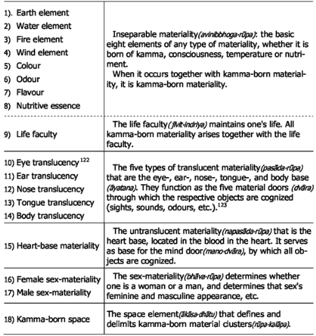 • Kamma-Born Materiality(kammaja’n7pal21 is eighteen types of materiality: