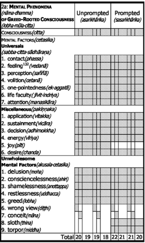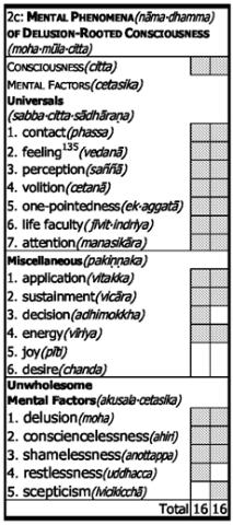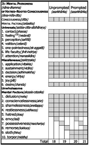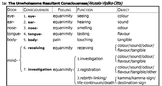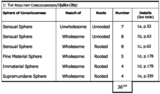 119 There are in all thirty-six types of resultant consciousness, see table ‘1: The Resultant Consciousnesses’, p.44.