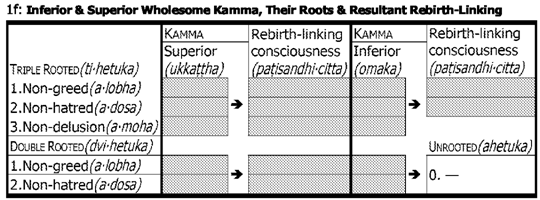 17S These differences manifest in the resultant consciousnesses: see table ‘if: Inferior & Superior Wholesome Kamma, Their Roots & Resultant Rebirth-Unking’, p.61. For the succeeding/preceding volitons, see explanation rrom MA, footnote 669, p.2S7.