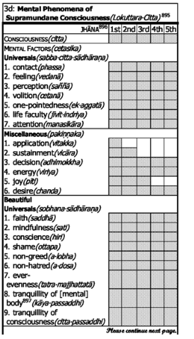 311 In D.iii.5 ‘Sampas8(/aniya·Suttam'(‘The Faith-Inspiring Sutta’), the Venerable 5ariputta explains how The Buddha teaches the meditator to know both the uninterrupted(abbocd1­innarh) flow of consciousness(vifiiij”Qa·.svta) in this world established/Patilthita), and in another world established. For details, see footnote 305, p.l05, and table ‘5a: Death and Rebirth’, p.50.